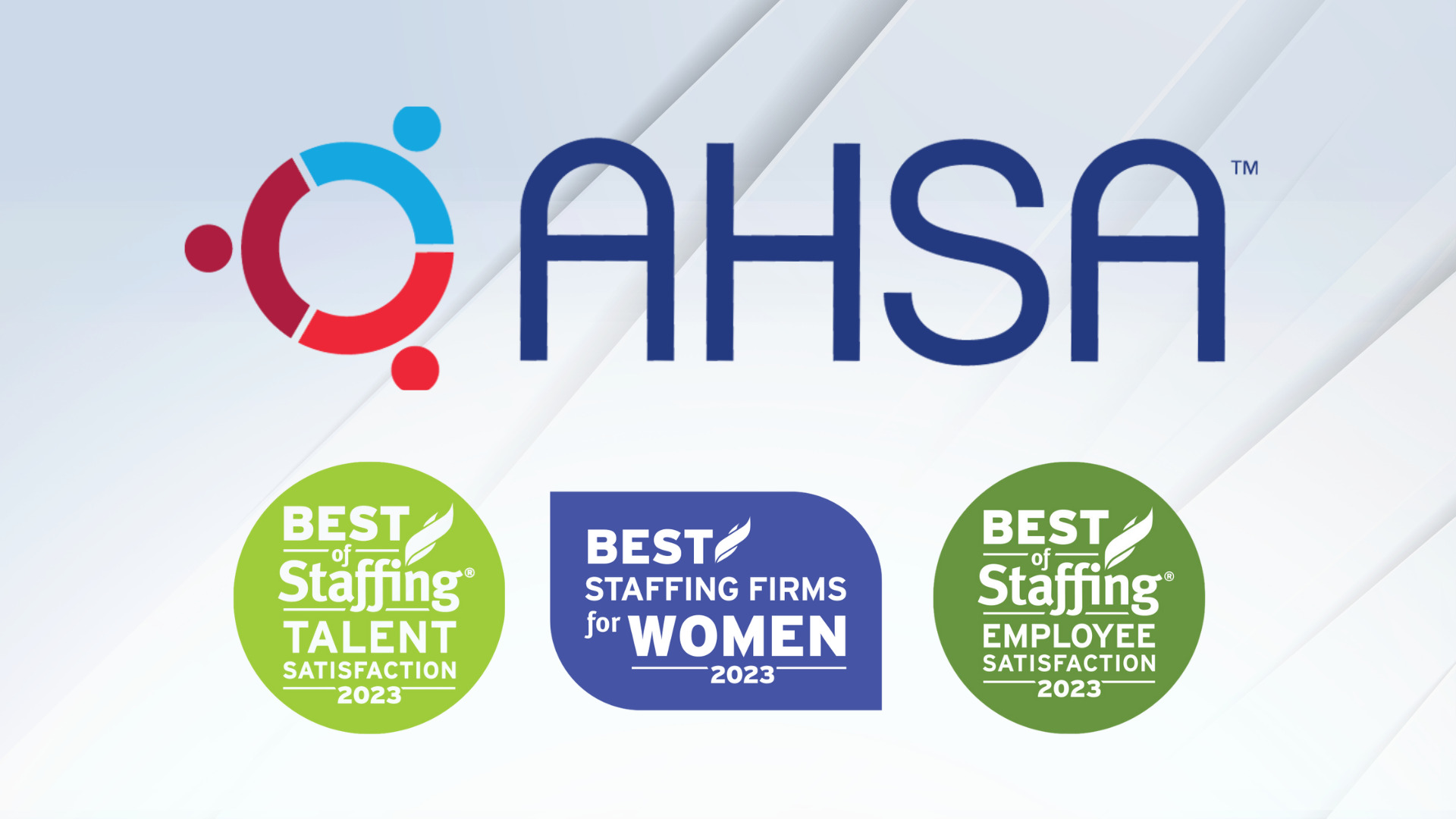 Edmond, Okla. – June 7, 2023 – American Health Staffing Group (“AHSG”), a technology-driven, fully diversified healthcare staffing company with a full workforce solutions offering, announced today that they have won the trifecta of ClearlyRated Best of Staffing Awards for providing an exceptional experience for their employees. They have recently been named to ClearlyRated Best of Staffing Firms for Women, ClearlyRated Best of Staffing Employee Satisfaction, and ClearlyRated Best of Staffing Talent. Presented in partnership with presenting sponsor Indeed and gold sponsor Talent.com, ClearlyRated’s Best of Staffing® Award winners have proven to be industry leaders in service quality based entirely on ratings provided by their employees and candidates. On average, job seekers who work with winning agencies are 80% more likely to be completely satisfied with the services provided to them compared to those of non-winners. Further, fewer than 0.2% of staffing firms in the United States and Canada qualified to earn the Best in Staffing Firms for Women designation making this a prestigious recognition for staffing firm seekers to hire and retain top talent.