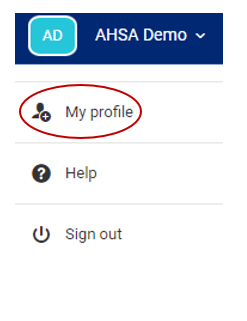 You can locate this page by logging into AHSA Trio and clicking on your name in the top right corner of the screen. A drop down menu will appear with the option "My Profile" clicking here will bring you to your profile page.